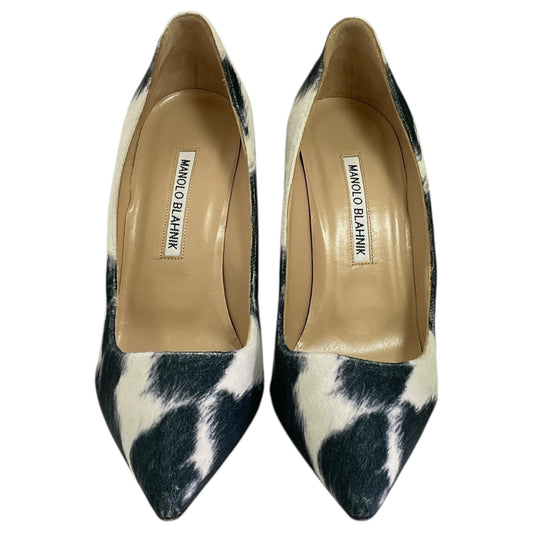 Shoes Luxury Designer By Manolo Blahnik In Black & White, Size:7.5