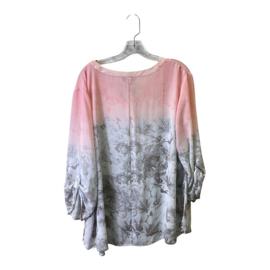 Top 3/4 Sleeve By Catherines In Pink & White, Size:2X