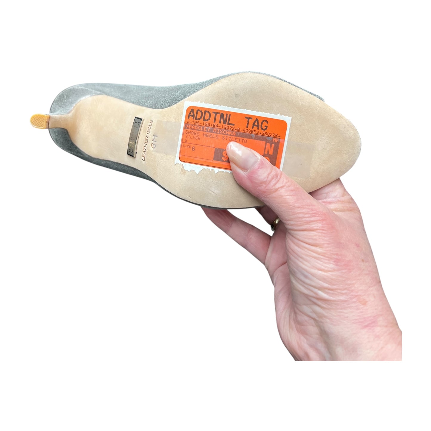 Shoes Heels Stiletto By Badgley Mischka In Silver, Size:6